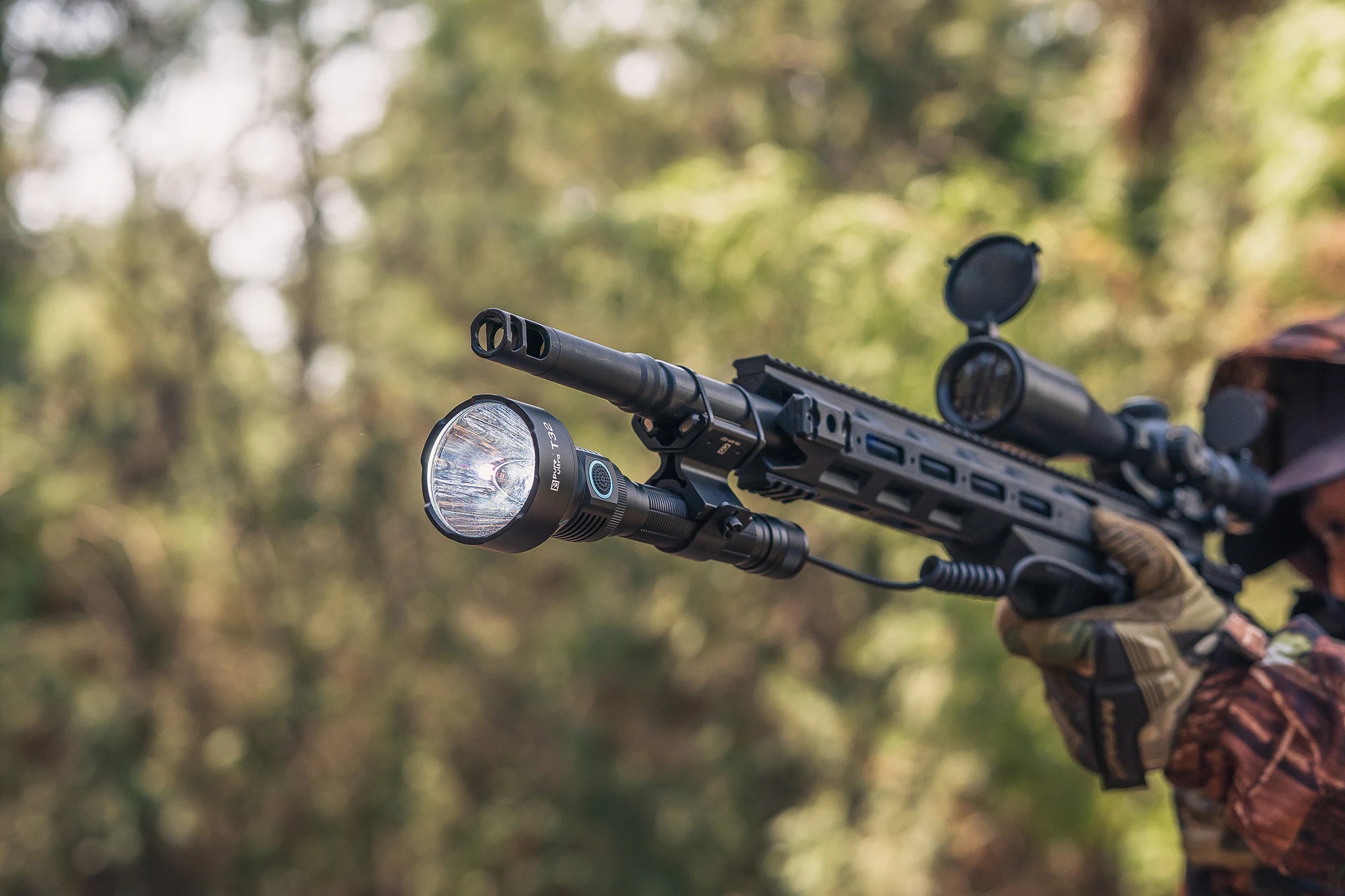 Der speziell gebaute Reflektor sorgt für einen sehr engen Lichtkegel – perfekt, um weit entfernte Ziele klar zu beleuchten. Ideal für Jäger, Sicherheitskräfte oder Suchaktionen.